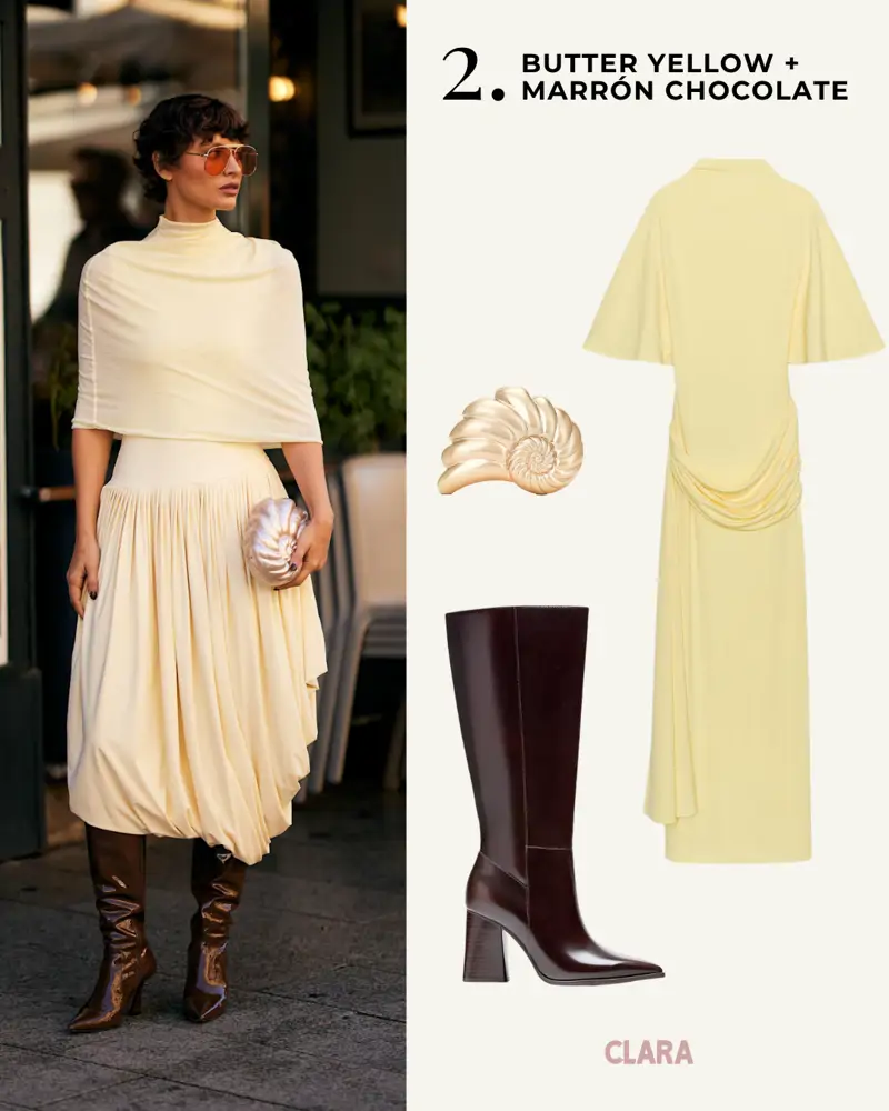 Le jaune beurre est resté l’une des couleurs phares du printemps/été 2025, et nombreux sont ceux qui refuseront de l’abandonner durant les mois plus froids. C’est une couleur qui illuminera nos journées, mais pour l’adapter à l’hiver, il faudra l’associer à une teinte plus foncée, comme le brun chocolat , également très tendance.