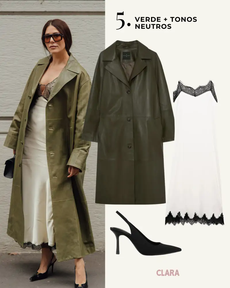 Le contraste sera essentiel entre des pièces plus sophistiquées, comme une robe nuisette ou un chemisier , et d’autres à l’allure plus masculine, comme un blouson en cuir ou un trench-coat. Selon les chaussures choisies, cette tenue peut se prêter à de nombreuses combinaisons.