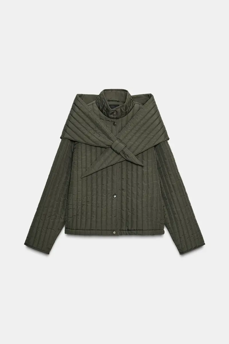 Celle-ci s’inscrit dans la tendance des écharpes déjà présente l’année dernière, en les intégrant comme accessoire clé à la veste. Elle arbore le même effet matelassé, ce qui lui confère une touche d’originalité, et vous pouvez l’enfiler et l’enlever à votre guise.
