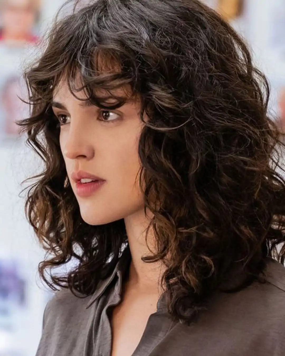 Sa texture bouclée et sa brillance intense lui confèrent un aspect libre et artistique, à mi-chemin entre le rock et la sophistication. La frange bouclée apporte une touche de jeunesse et d’insouciance qui adoucit les traits.
