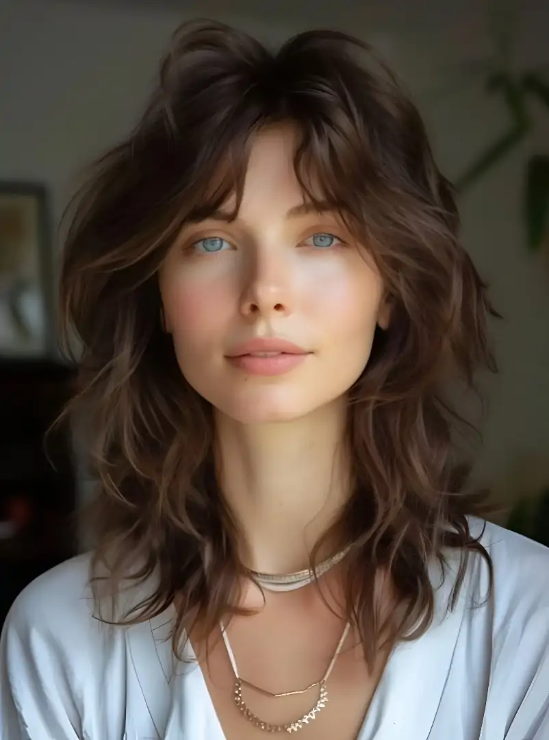 Aussi appelée « coupe shag », cette coupe est très appréciée pour sa capacité à mettre en valeur les traits du visage et à donner du caractère au look .