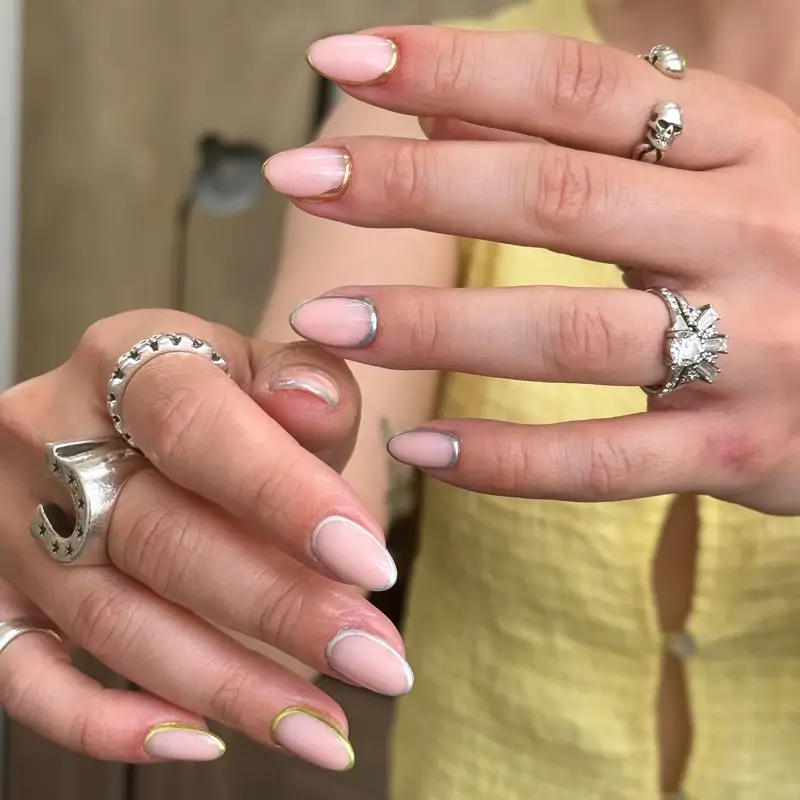 Avec des lignes métalliques pour une manucure cet hiver 2025/26