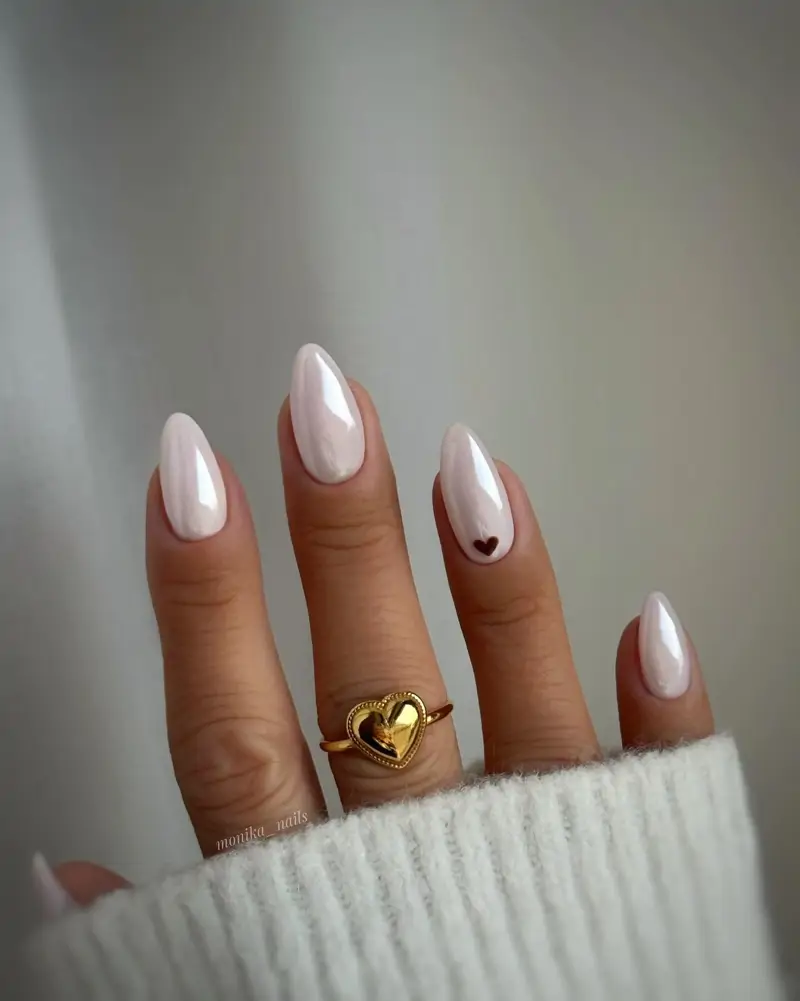Pour une touche personnelle et séduisante, ajoutez un petit détail, comme un cœur ou un trait fin, pour une manucure sophistiquée.