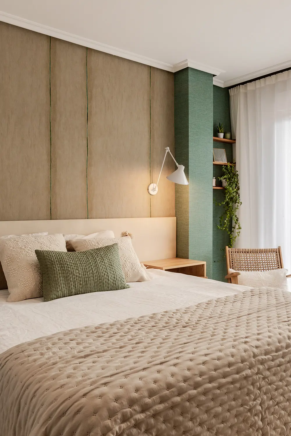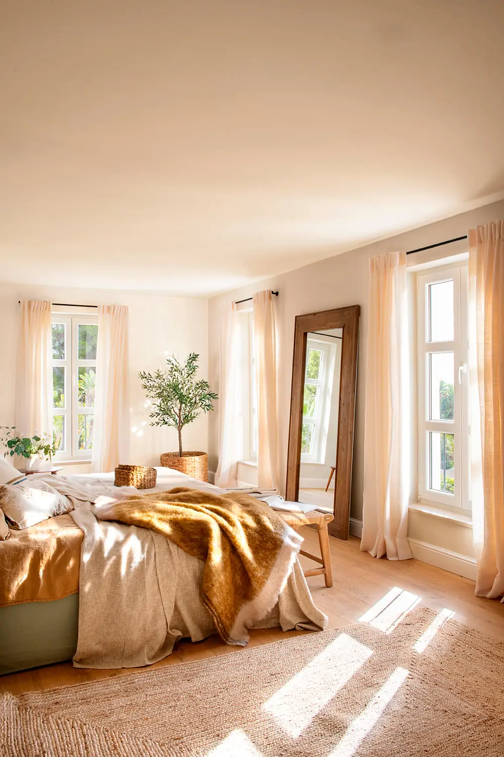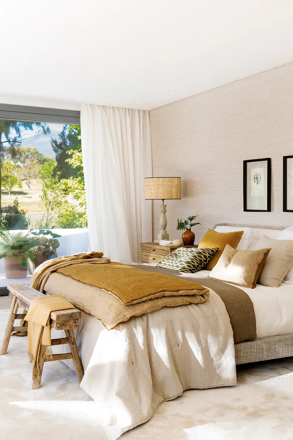 Pour réchauffer visuellement une chambre, rien de tel que les couleurs inspirées de la nature : sable, terracotta, gris poudré, vert sauge ou ocre doux.