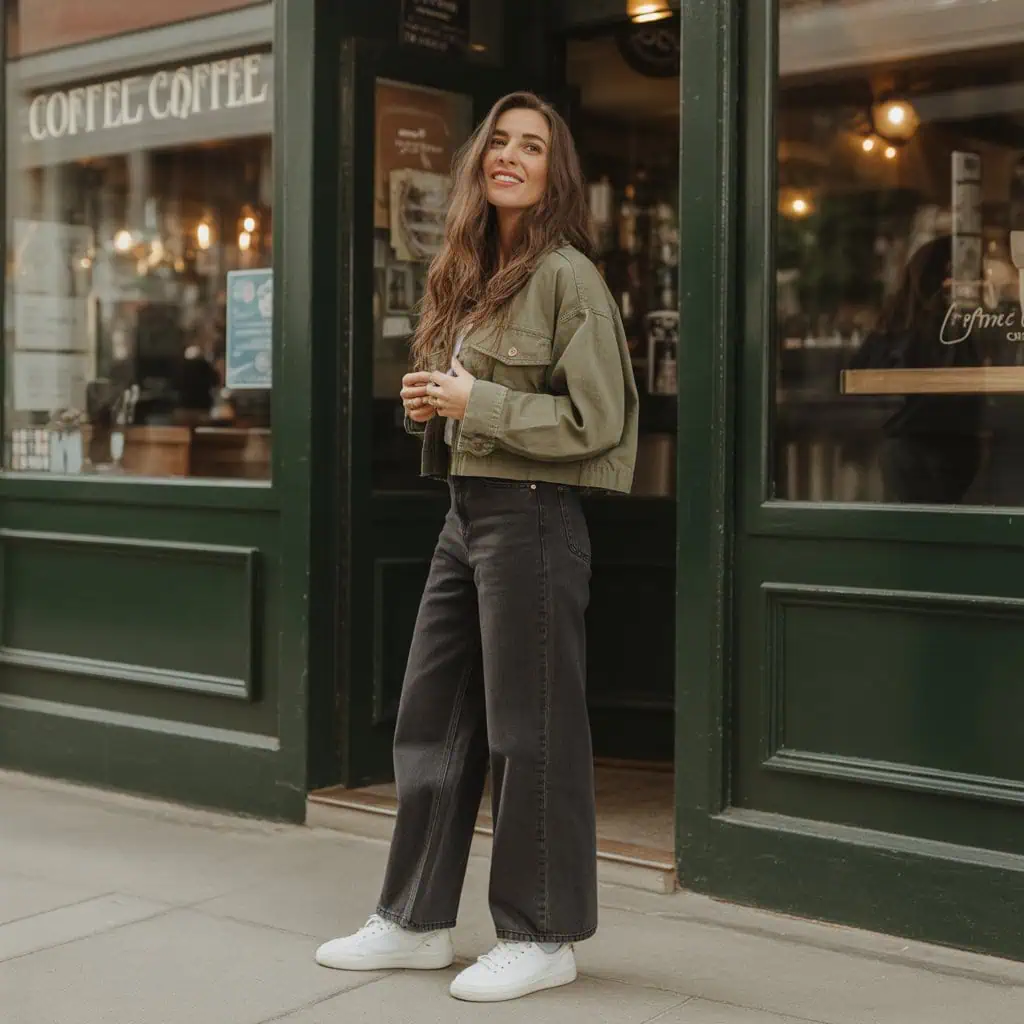 Le jean large fait un retour en force, et l’associer à une veste courte est une excellente façon d’adopter cette tendance.