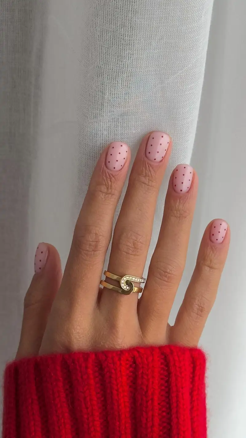 Les pois sont toujours tendance. Cet hiver, ils se parent d’une base rose pastel, ornée de minuscules points rouges, pour une touche à la fois ludique et élégante.