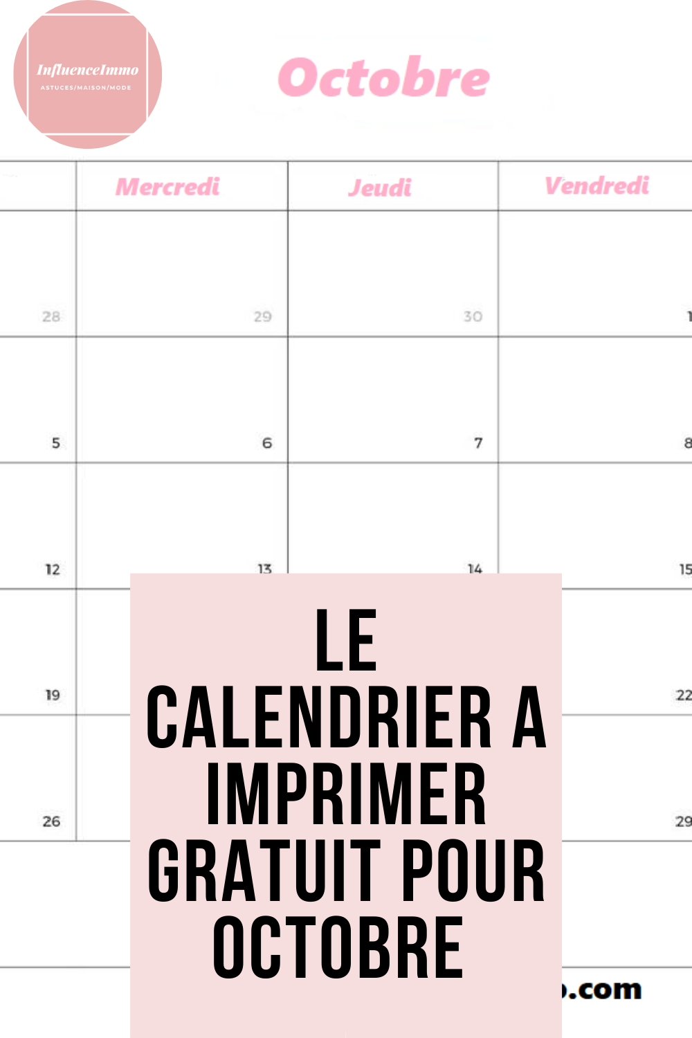 Votre calendrier pour OCTOBRE 2021 à imprimer :