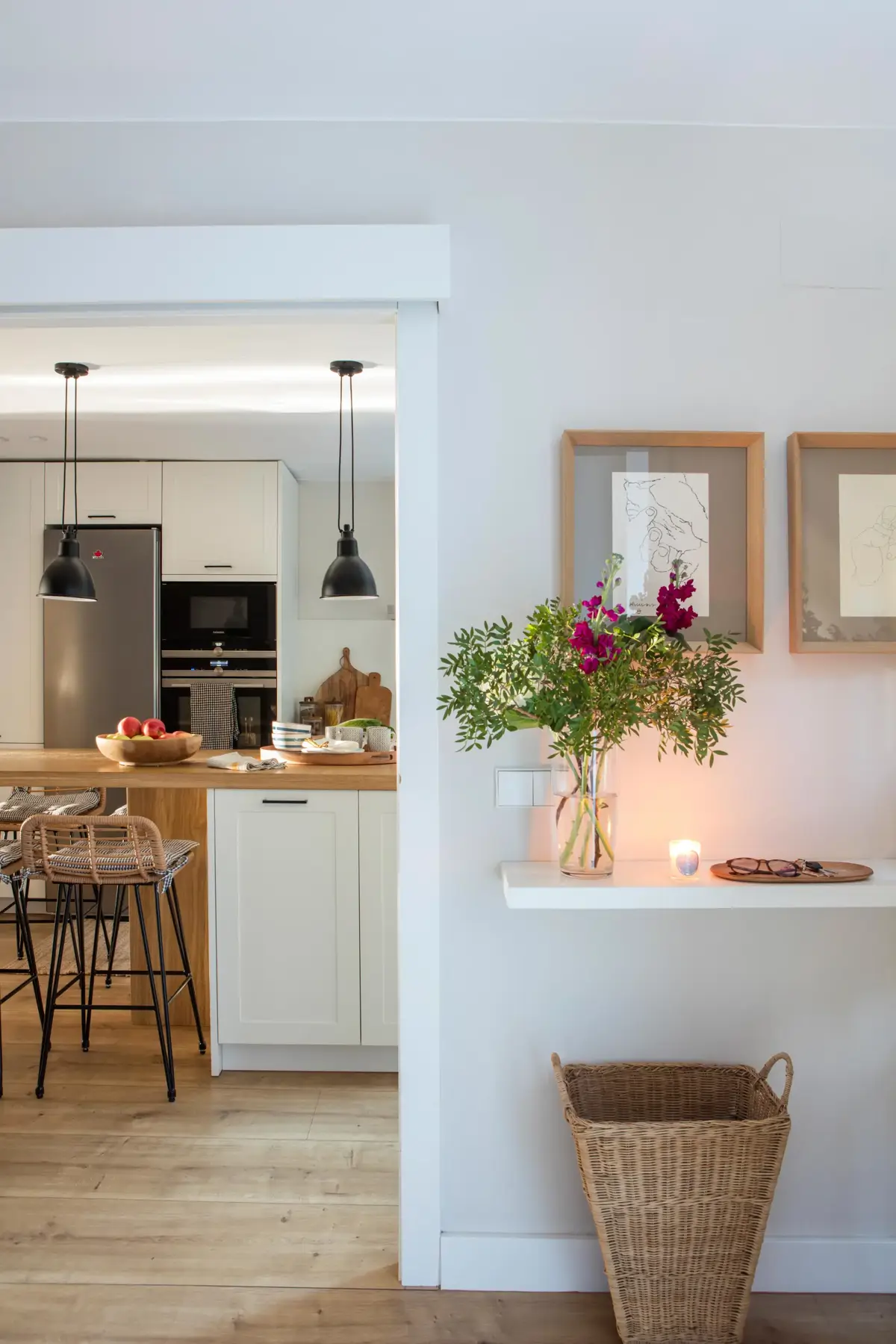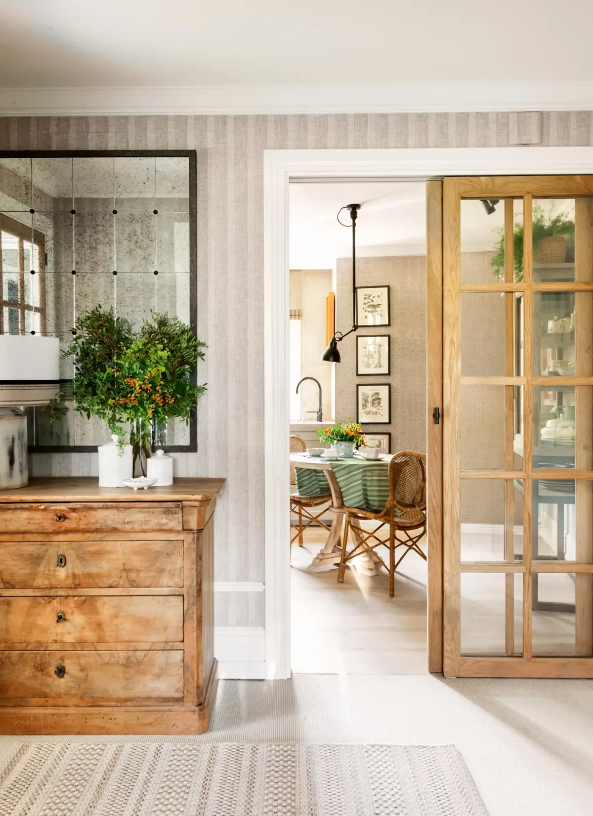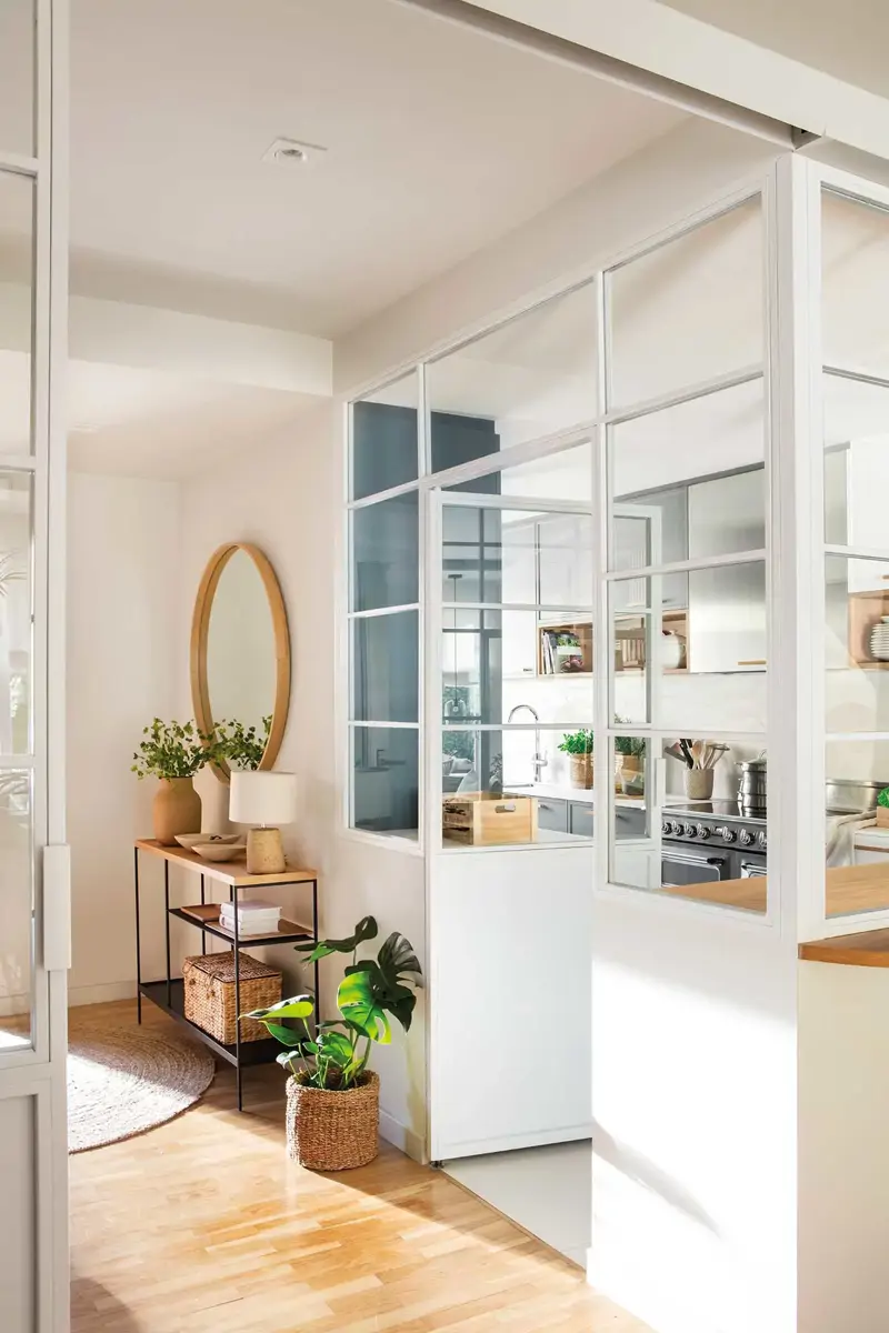 S’il y a bien un élément essentiel à la décoration d’un couloir, c’est le miroir. Et Alberto Aranda le confirme : Les miroirs sont toujours un allié précieux dans les petits espaces ; ils les agrandissent et les rendent plus lumineux .