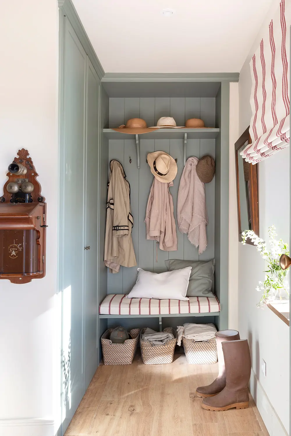 J’adore les porte-manteaux dans l’entrée ; ils sont un élément central qui révèle le désordre. Dans la mesure du possible, nous recommandons un placard intégré, aussi petit soit-il.