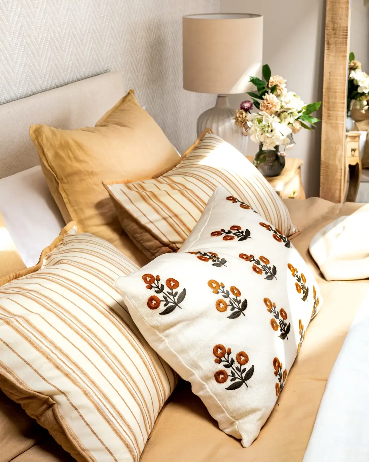 Ce magnifique coussin brodé évoque à lui seul la chambre romantique de votre grand-mère.