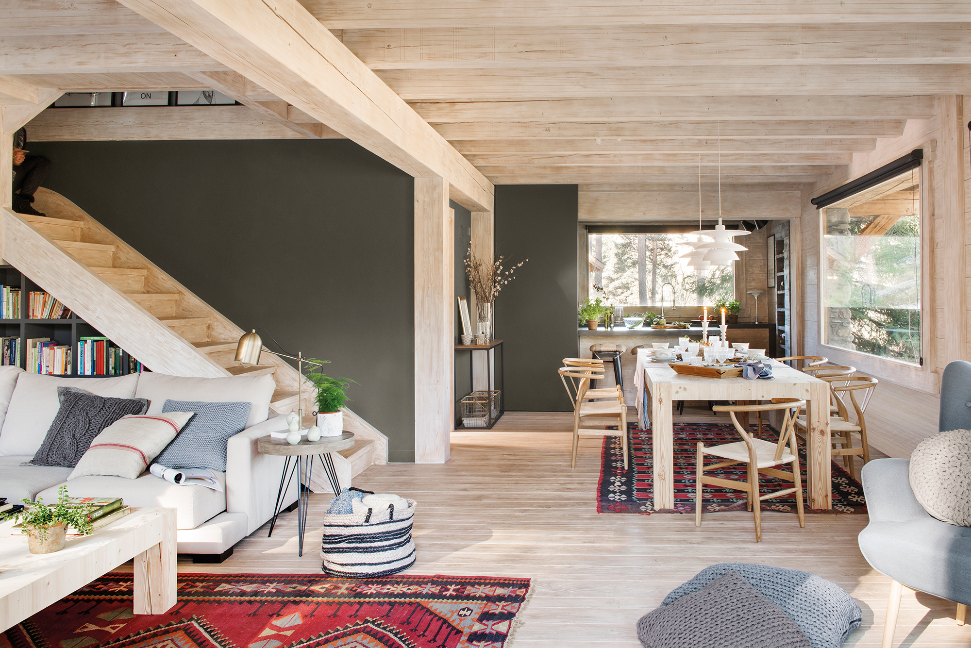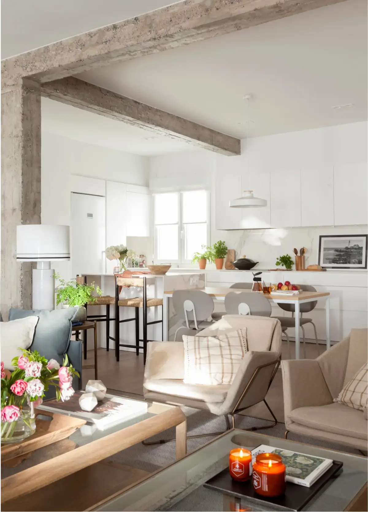 Par exemple, observez comment les poutres et les piliers sont exposés et mis en valeur dans cet espace.