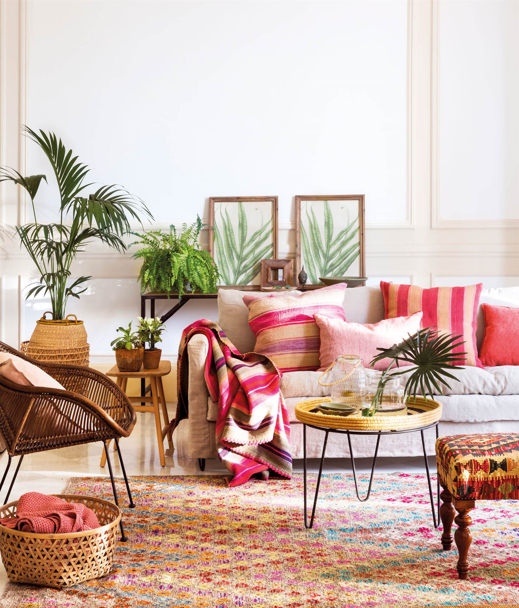 Il est judicieux d’ajouter ensuite de la couleur et du caractère grâce à des détails. Optez pour des murs et des canapés aux tons clairs, et réservez des touches de couleur aux coussins, tableaux, tapis et petits accessoires pour les mettre en valeur et leur donner du caractère.