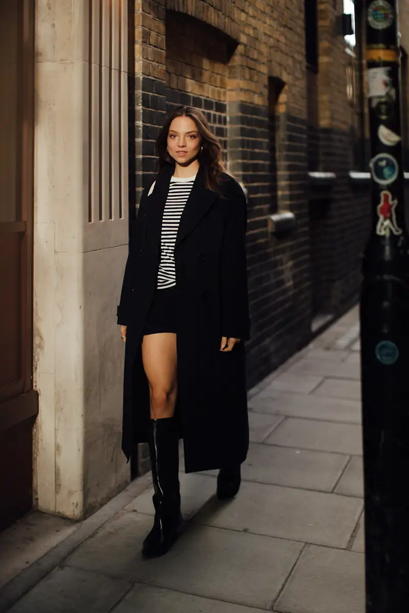 Bottes hautes + short ou bermuda. Ce duo inattendu peut être complété par un pull léger ou une veste en daim, créant ainsi un look polyvalent et distinctif, parfait pour vous accompagner du matin au soir.