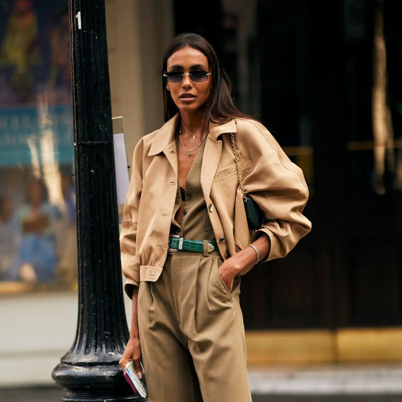 La veste en daim est, par excellence, l’une des pièces phares de la mi-saison : elle offre la chaleur idéale aux premières heures du jour, sans devenir lourde lorsque les températures grimpent et qu’on doit la porter à la main. C’est la veste à avoir pour cet automne 2025.