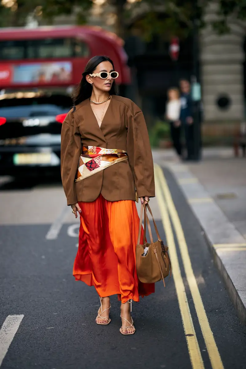 L’associer à une jupe midi légère crée un contraste subtil qui incarne parfaitement l’esprit de cette saison.