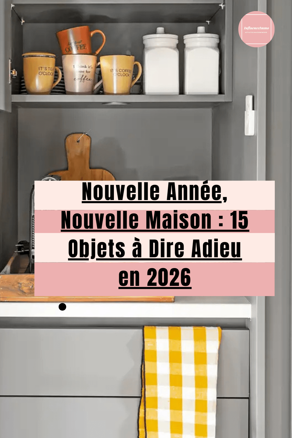 Dans cet article, nous avons listé 15 objets à jeter (ou à donner) pour commencer l’année 2026 avec une maison plus légère, plus harmonieuse et plus agréable à vivre. Des petits détails que l’on garde “au cas où”, aux objets déco dépassés, en passant par les accessoires du quotidien qui encombrent sans apporter de valeur réelle. Une approche simple, concrète et accessible, parfaite pour amorcer un vrai renouveau chez soi… sans dépenser un centime.